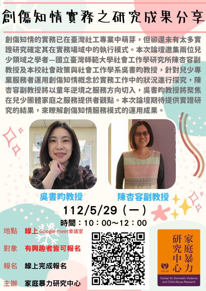 主題:創傷知情實務之研究成果分享